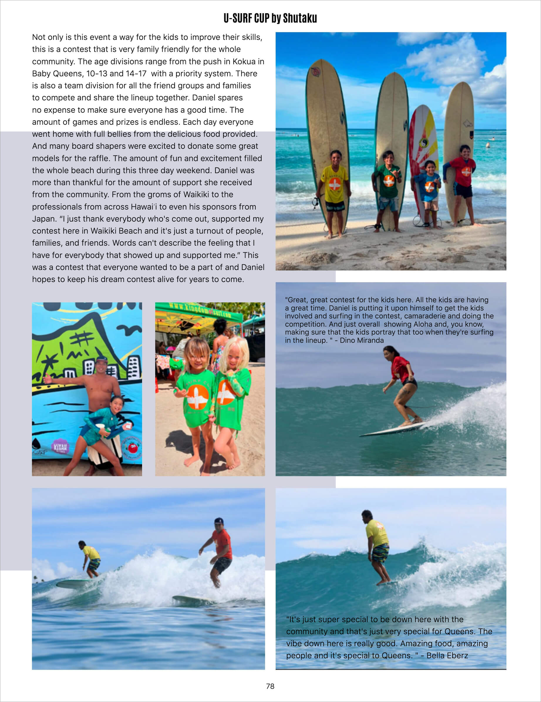 私もこのビーチで育って、いつも父やビーチのおじさん、おばさんたちに見守られていたの。で、今とても強く思うのは、次の世代に引き継がなきゃということ。ダニエルはみんなのためにコンテストを開催して、私はサーフボードをシェイプしました。