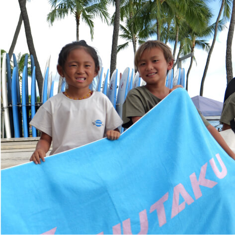 そして、サーフィンが⼤好きな⼦ども達にプロの世界で戦うのと